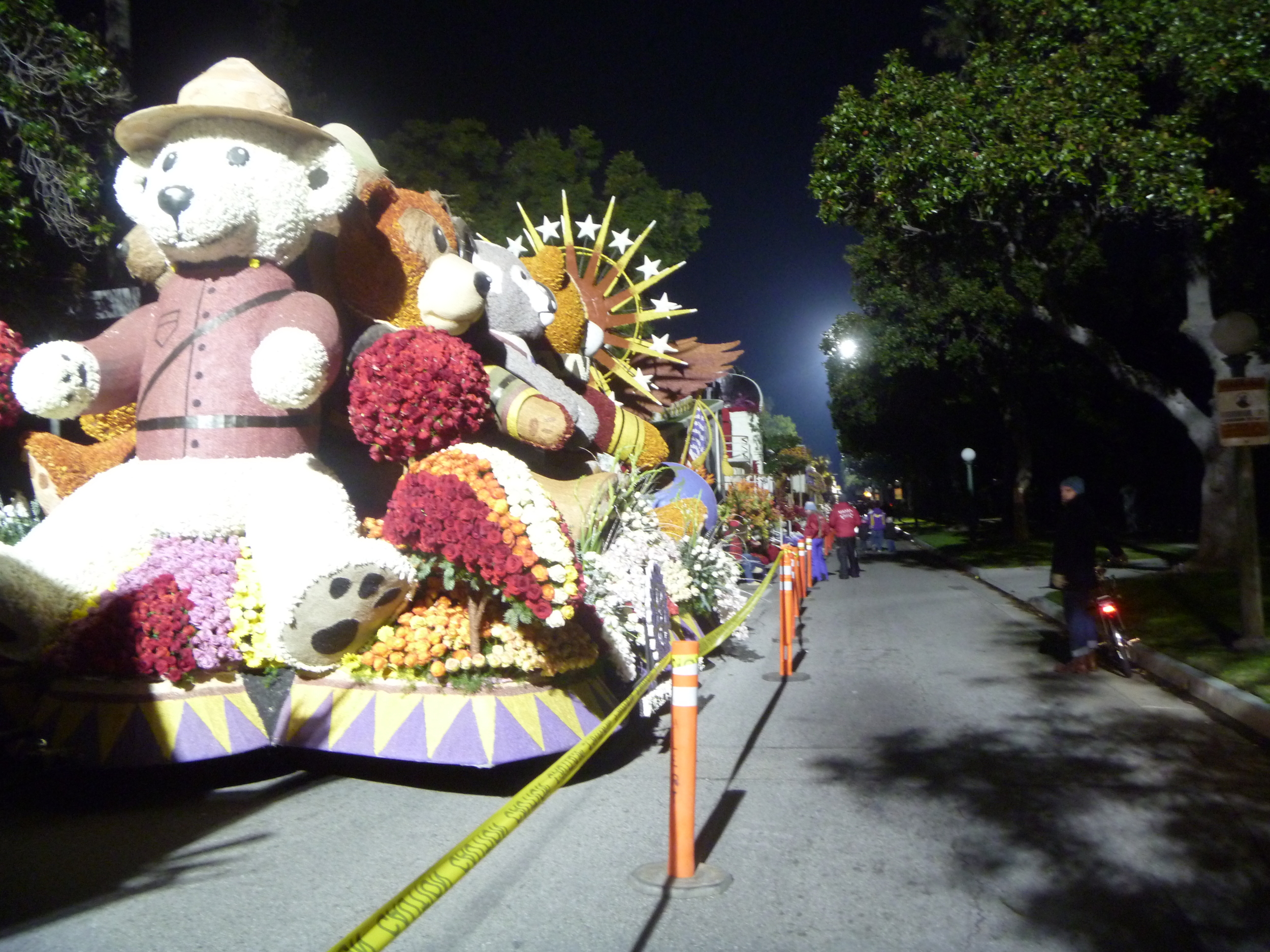 No need to wake up at dawn or stake out a seat along the parade route. Around 11 pm on New Years Eve in Pasadena the floats begin lining up on Orange Grove Ave, starting south of Colorado Boulevard on down to Columbia Street. It’s a surreal site; huge floodlights light up the street for a half mile and you can get within feet of the floats. Crowds of people turn out all night long to get a good look at the floats before anyone else. You’ll definitely want to bring your bike or take Metro - driving in the area becomes extremely difficult due to all the road closures beginning around 8 pm. A few Metro Gold Line stops will get you within a mile or so of the floats: Del Mar Station, Filmore, and South Pasadena Stations. Here's a great map showing street closures and the parade route.