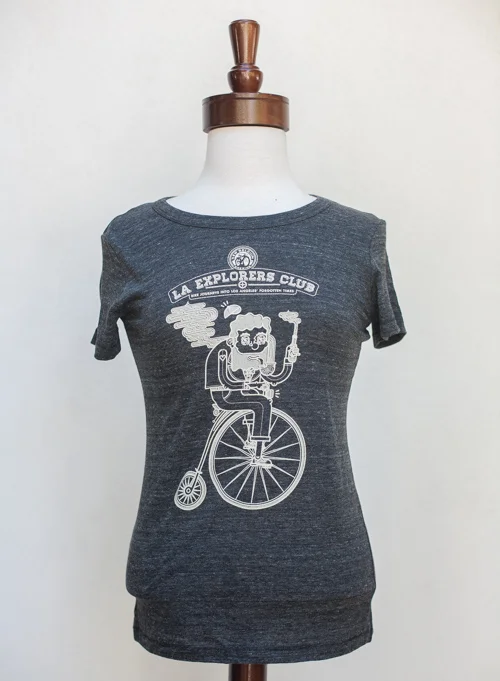 Fitted Women's t-shirt in Heathered Charoal Gray. 50% Polyester, 28% Cotton, 12% Rayon.